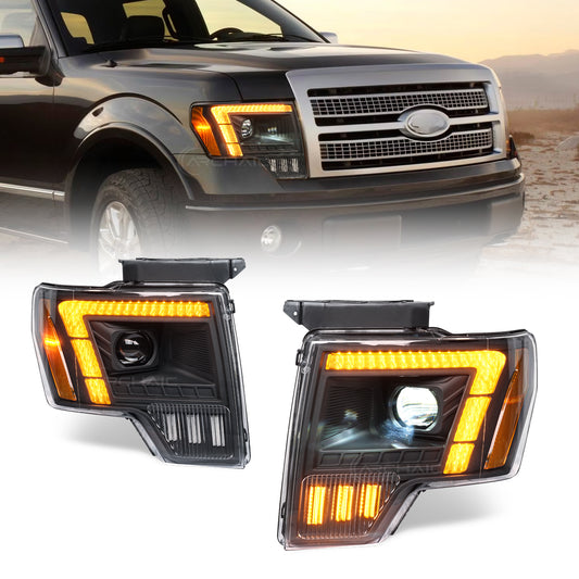 Phares à DEL à double lentille pour Ford F-150 FX2, FX4, King Ranch, Lariat, Limited, Platinum, STX, SVT Raptor, XL, XLT et Lariat Limited (2009-2014)